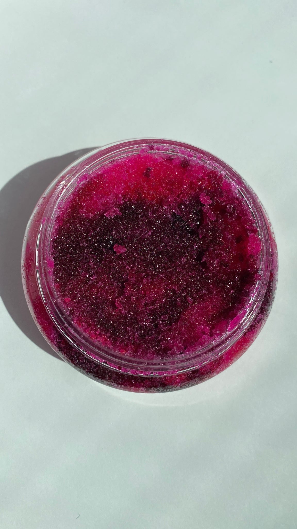 This is our RASPBERRY Italian ice lip scrub. It is a pink and purple colored scrub that is raspberry flavored. It is edible which means it is safe to lick off when done using but please do not eat the whole scrub. A little goes a long way. Scrubbing your lips is very important especially during cold and hot seasons.