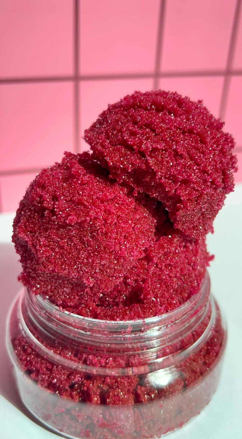 This is our STRAWBERRY Italian ice lip scrub. It is a dark red colored scrub that is strawberry flavored. It is edible which means it is safe to lick off when done using but please do not eat the whole scrub. A little goes a long way. Scrubbing your lips is very important especially during cold and hot seasons.